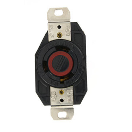 Leviton 2640, Flush Mount Locking Receptacle, Industrial Grade, 30A 480V, NEMA L8-30R, 2-Pole, 3-Wire, Grounding, Black