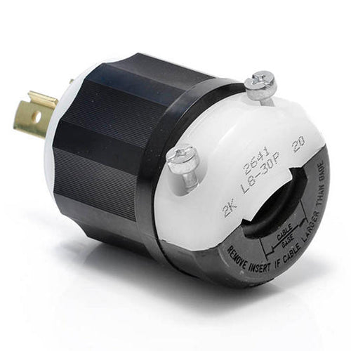 Leviton 2641, Locking Plug, Industrial Grade, 30A 480V, NEMA L8-30P, 2-Pole, 3-Wire, Grounding, Black/White