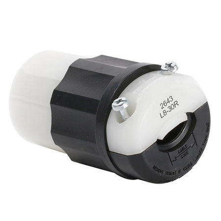 Leviton 2643, Locking Connector, Industrial Grade, 30A 480V, NEMA L8-30R, 2-Pole, 3-Wire, Grounding, Black/White