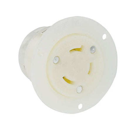 Leviton 2646, Flanged Outlet Locking Receptacle, Industrial Grade, 30A 480V, NEMA L8-30R, 2-Pole, 3-Wire, Grounding, White