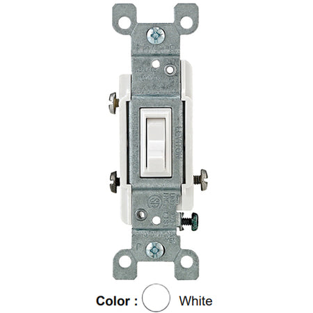 Leviton 2653-2W, CO/ALR 3-Way AC Quiet Toggle Switch, Residential Grade, 15A 120V AC, Grounding, Side Wired, White