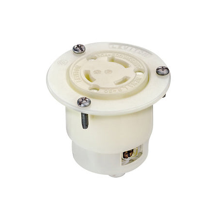 Leviton 2656, Flanged Outlet Locking Receptacle, Industrial Grade, 30 Amp, 600 Volt, NEMA L9-30R, 2-Pole, 3-Wire, Grounding, White