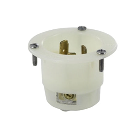 Leviton 2665, Flanged Inlet Locking Receptacle, Industrial Grade, 30A 125/250V, NEMA L10-30P, 3-Pole, 3-Wire, Non-Grounding, White