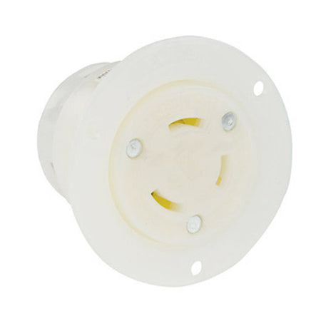 Leviton 2696, Flanged Outlet Locking Receptacle, Industrial Grade, 30A 600V, 3-Phase, NEMA L13-30R, 3-Pole, 3-Wire, Non-Grounding, White