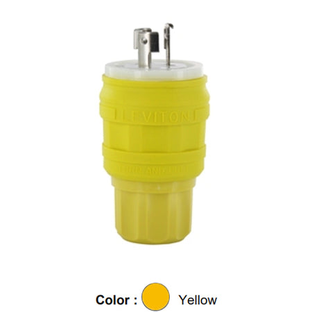 Leviton 26W08, Wetguard Watertight Locking Plug, Industrial Grade, 20A 125/250V, Non-NEMA, 3-Pole, 3-Wire, Non-Grounding, Yellow