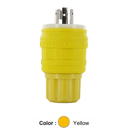 Leviton 26W48, Wetguard Watertight Locking Plug, Industrial Grade, 20A 250V, NEMA L6-20P, 2-Pole, 3-Wire, Grounding, Yellow
