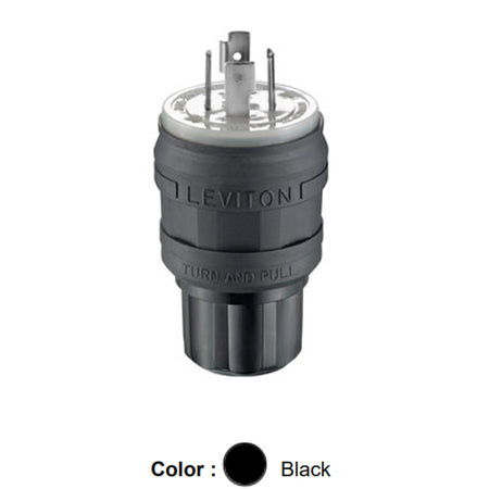 Leviton 26W75-B, Wetguard Watertight Locking Plug, Industrial Grade, 3-Phase, 20A 250V, NEMA L15-20P, 3-Pole, 4-Wire, Grounding, Black