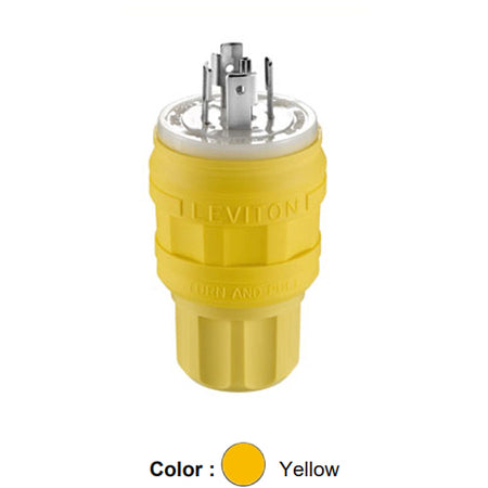 Leviton 26W81, Wetguard Watertight Locking Plug, Industrial Grade, 3-Phase Y, 20A 120/208V, NEMA L21-20P, 4-Pole, 5-Wire, Grounding, Yellow