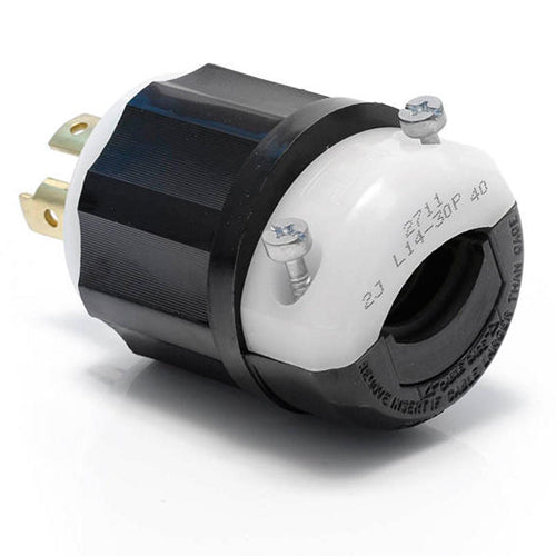Leviton 2711, Locking Plug, Industrial Grade, 30A 125/250V, NEMA L14-30P, 3-Pole, 4-Wire, Grounding, Black/White