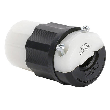 Leviton 2713, Locking Connector, Industrial Grade, 30A 125/250V, NEMA L14-30R, 3-Pole, 4-Wire, Grounding, Black/White