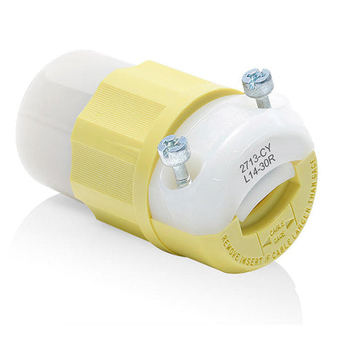 Leviton 2713-CY, Locking Connector, Industrial Grade, 30A 125/250V, NEMA L14-30R, 3-Pole, 4-Wire, Grounding, Yellow/White