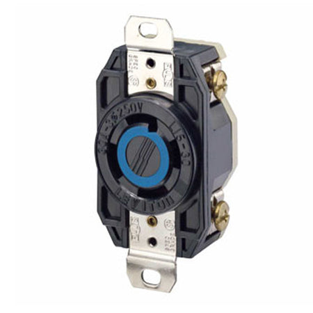 Leviton 2720, Flush Mount Locking Receptacle, Industrial Grade, 30A 250V, 3-Phase, NEMA L15-30R, 3-Pole, 4-Wire, Grounding, Black