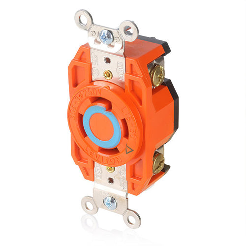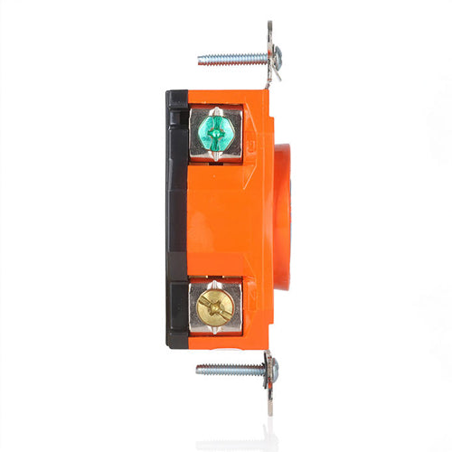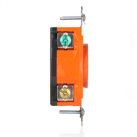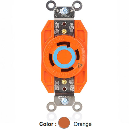 Leviton 2720-IG, Flush Mount Locking Receptacle, Industrial Grade, 30A 250V, 3-Phase, NEMA L15-30R, 3-Pole, 4-Wire, Isolated Ground, Orange