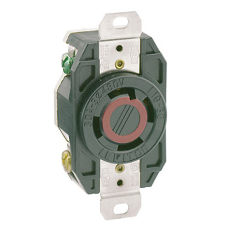 Leviton 2730, Flush Mount Locking Receptacle, Industrial Grade, 30A 480V, 3-Phase, NEMA L16-30R, 3-Pole, 4-Wire, Grounding, Black