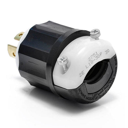 Leviton 2751, Locking Plug, Industrial Grade, 30A 120/208V, 3-Phase Y, NEMA L18-30P, 4-Pole, 4-Wire, Non-Grounding, Black/White