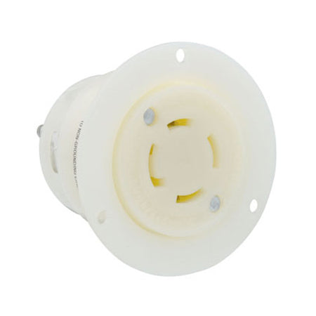 Leviton 2756, Flanged Outlet Locking Receptacle, Industrial Grade, 30A 120/208V, 3-Phase Y, NEMA L18-30R, 4-Pole, 4-Wire, Non-Grounding, White