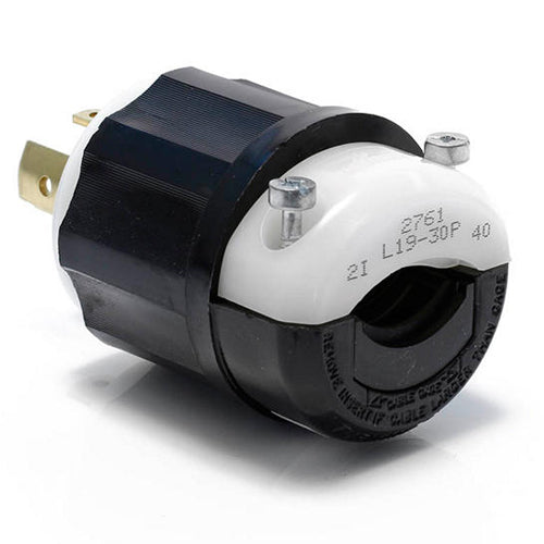 Leviton 2761, Locking Plug, Industrial Grade, 30A 277/480V, 3-Phase Y, NEMA L19-30P, 4-Pole, 4-Wire, Non-Grounding, Black/White