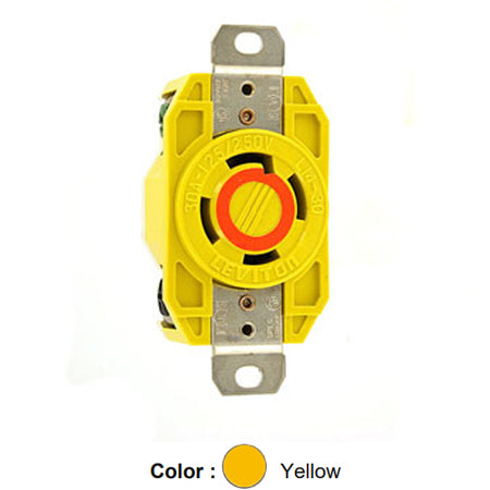 Leviton 27CM-10, Flush Mount Locking Receptacle, Industrial Grade, Corrosion Resistant, 30A 125/250V, NEMA L14-30R, 3-Pole, 4-Wire, Grounding, Yellow