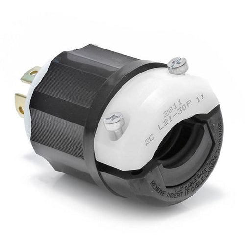 Leviton 2811, Locking Plug, Industrial Grade, 30A 120/208V, 3-Phase Y, NEMA L21-30P, 4-Pole, 5-Wire, Grounding, Black/White