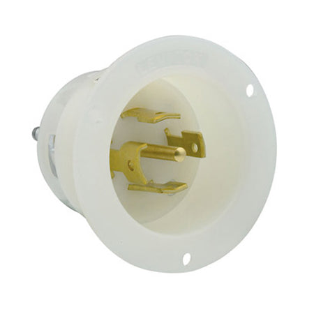 Leviton 2815, Flanged Inlet Locking Receptacle, Industrial Grade, 30A 120/208V, 3-Phase Y, NEMA L21-30P, 4-Pole, 5-Wire, Grounding, White