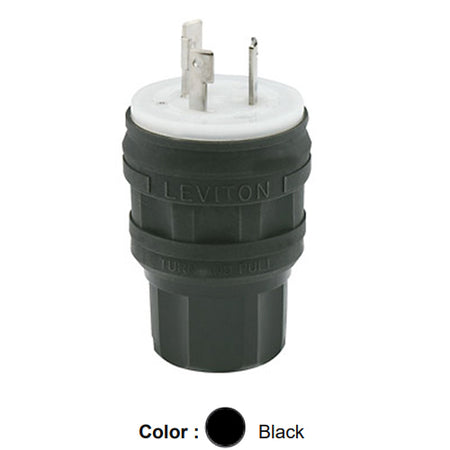 Leviton 28W47-B, Wetguard Watertight Locking Plug, Industrial Grade, 30A 125V, NEMA L5-30P, 2-Pole, 3-Wire, Grounding, Black