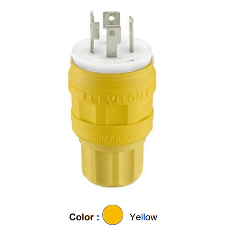 Leviton 28W76, Wetguard Watertight Locking Plug, Industrial Grade, 3-Phase, 30A 480V, NEMA L16-30P, 3-Pole, 4-Wire, Grounding, Yellow