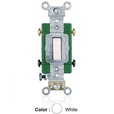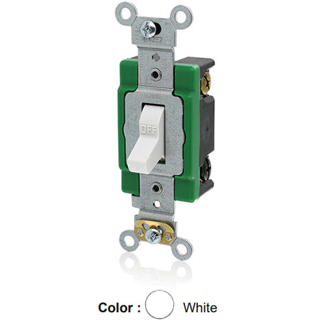 Leviton 3032-2W, Standard Double Pole AC Quiet Toggle Switch, Extra Heavy-Duty Industrial Specification Grade, 30A 120/277V AC, Self Grounding, Back & Side Wired, White