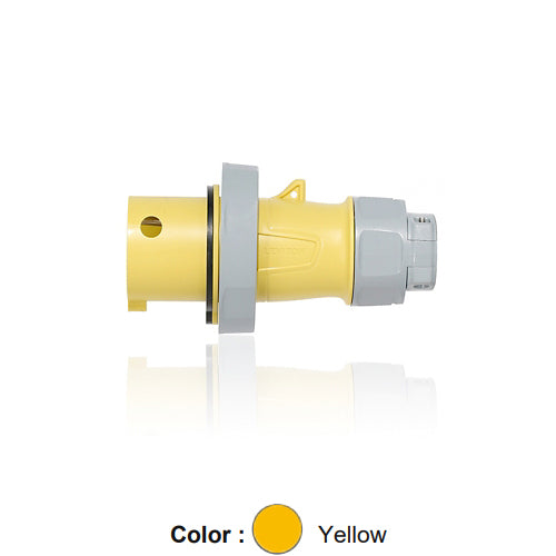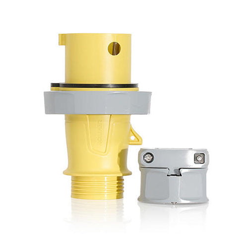 Leviton 320P4WLEV, LEV Series North American-Rated IEC 60309-1 & 60309-2 Pin & Sleeve Plug with Standard Clamp, Industrial Grade, 20A 125V, 2-Pole, 3-Wire, IP66/IP67/IP68/IP69K, Watertight, Yellow