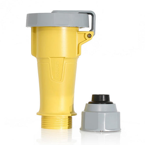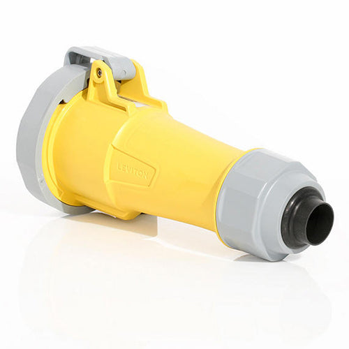 Leviton 330C4WLEVA, LEV Series North American-Rated IEC 60309-1 & 60309-2 Pin & Sleeve Connector with Alternate Screwless Clamp, Industrial Grade, 30A 125V, 2-Pole, 3-Wire, IP66/IP67/IP68/IP69K, Watertight, Yellow