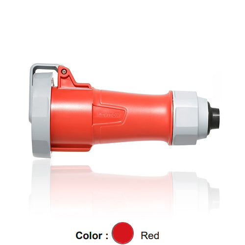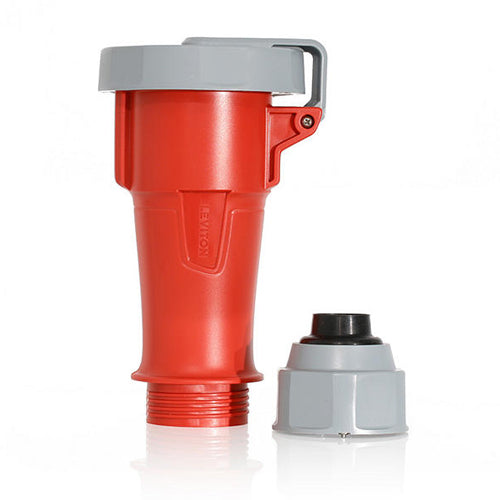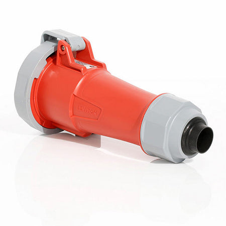 Leviton 330C7WLEVA, LEV Series North American-Rated IEC 60309-1 & 60309-2 Pin & Sleeve Connector with Alternate Screwless Clamp, Industrial Grade, 30A 480V, 2-Pole, 3-Wire, IP66/IP67/IP68/IP69K, Watertight, Red