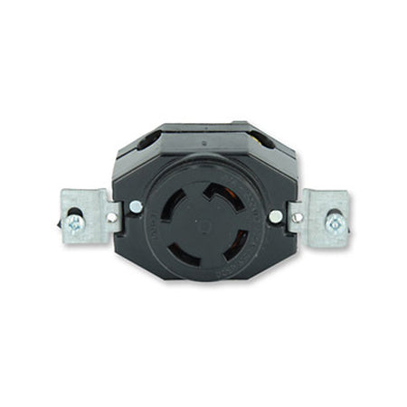 Leviton 3430, Flush Mount Locking Receptacle, Industrial Grade, 30 Amp, 120/208V AC, 3-Phase Y, Non-NEMA, 4-Pole, 4-Wire, Non-Grounding, Black