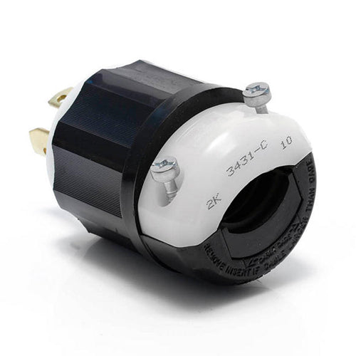 Leviton 3431-C, Locking Plug, Industrial Grade, 30A 120/208V, 3-Phase Y, Non-NEMA, 4-Pole, 4-Wire, Non-Grounding, Black/White