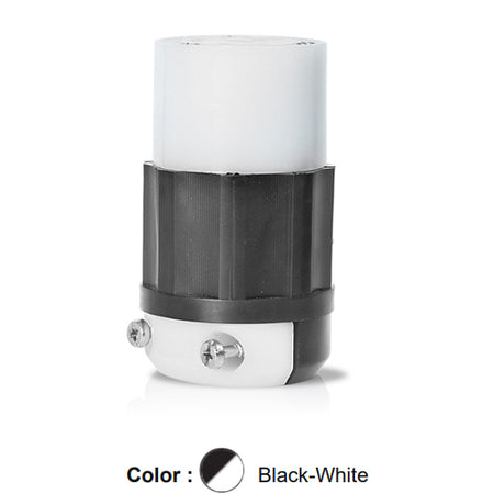 Leviton 3433-GC, Locking Connector, Industrial Grade, 30A 120/208V, 3-Phase Y, Non-NEMA, 4-Pole, 4-Wire, Grounding, Black/White