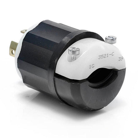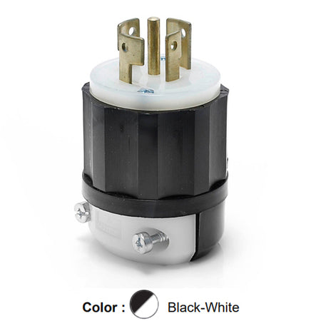 Leviton 3521-C, Locking Plug, Industrial Grade, 20/10A 250VDC/600VAC, Non-NEMA, 4-Pole, 5-Wire, Grounding, Black/White