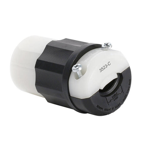 Leviton 3523-C, Locking Connector, Industrial Grade, 20/10A 250VDC/600VAC, Non-NEMA, 4-Pole, 5-Wire, Grounding, Black/White