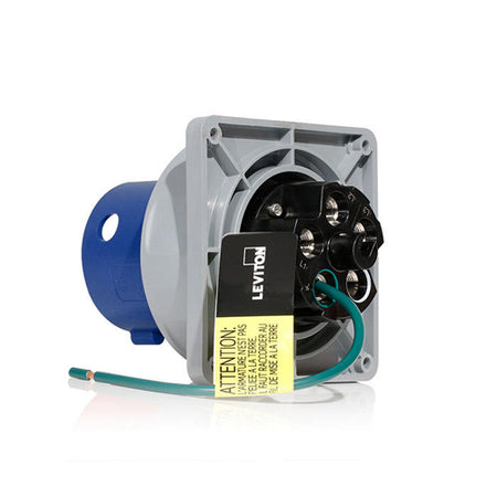 Leviton 4100B9WLEV, LEV Series North American-Rated IEC 60309-1 & 60309-2 Pin & Sleeve Inlet, Industrial Grade, 3-Phase, 100/125A 250V, 3-Pole, 4-Wire, IP66/IP67/IP68/IP69K, Watertight, Blue