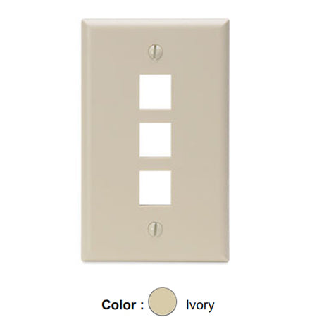 Leviton 41080-3IP, Quickport Single-Gang Wallplate, 3-Port, Flush Mount, Ivory, 2 Packs