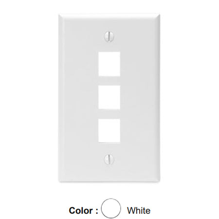 Leviton 41080-3WP, Quickport Single-Gang Wallplate, 3-Port, Flush Mount, White, 2 Packs