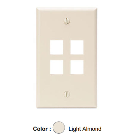 Leviton 41080-4TP, Quickport Single-Gang Wallplate, 4-Port, Flush Mount, Light Almond, 2 Packs