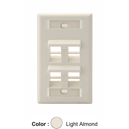 Leviton 42081-4TS, Quickport Angled Single-Gang Wallplate with ID Windows, 4-Port, Light Almond