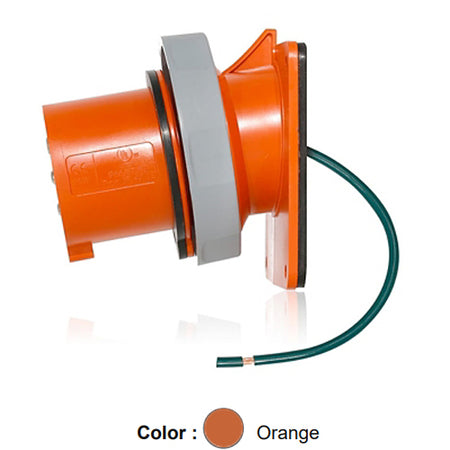 Leviton 420B12WLEV, LEV Series North American-Rated IEC 60309-1 & 60309-2 Pin & Sleeve Inlet, Industrial Grade, 20A 125/250V, 3-Pole, 4-Wire, IP66/IP67/IP68/IP69K, Watertight, Orange