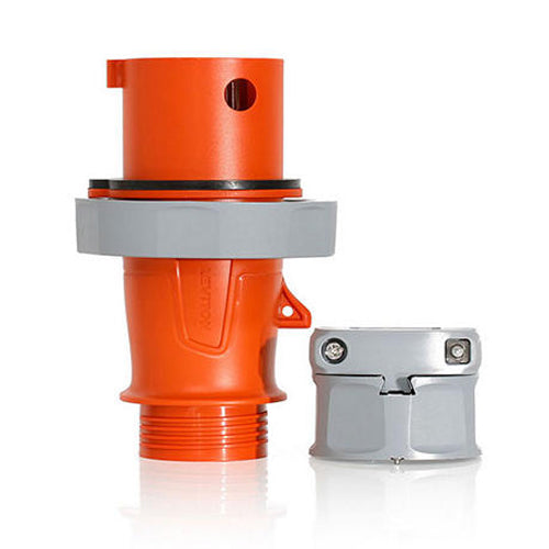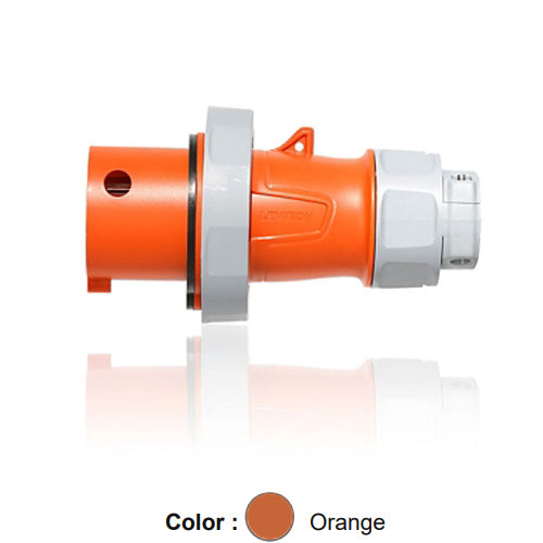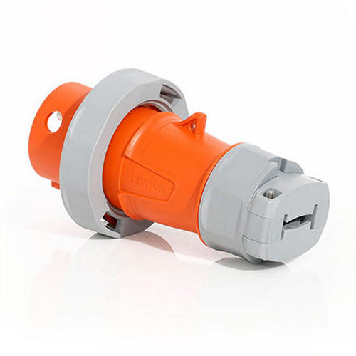 Leviton 420P12WLEV, LEV Series North American-Rated IEC 60309-1 & 60309-2 Pin & Sleeve Plug with Standard Clamp, Industrial Grade, 20A 125/250V, 3-Pole, 4-Wire, IP66/IP67/IP68/IP69K, Watertight, Orange