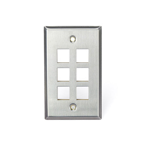 Leviton 43080-1S6, Quickport Stainless Steel Wallplate, Single-Gang, 6-Port