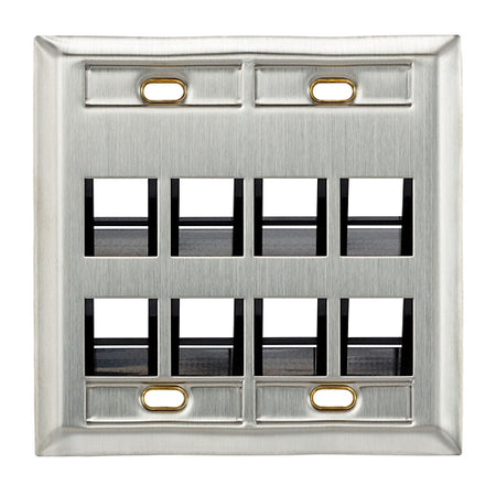 Leviton 43081-2L8, Quickport Angled Stainless Steel Wallplates with ID Windows, Dual-Gang, 8-Port