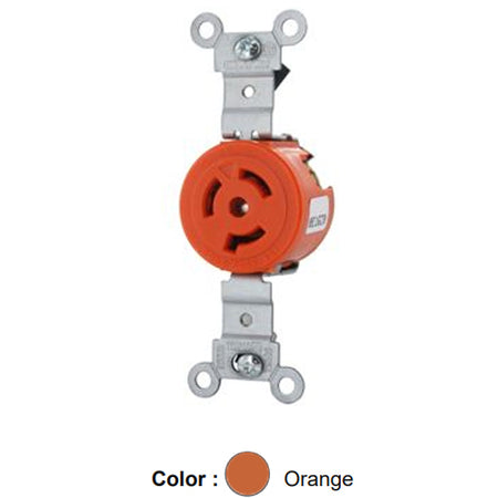 Leviton 4560-IG, Single Locking Receptacle, Industrial Grade, Isolated Ground, 15A 250V, NEMA L6-15R, 2-Pole, 3-Wire, Orange