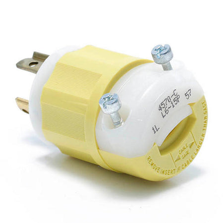 Leviton 4570-CY, Locking Plug, Industrial Grade, 15A 250V, NEMA L6-15P, 2-Pole, 3-Wire, Grounding, Yellow/White