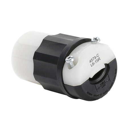 Leviton 4579-C, Locking Connector, Industrial Grade, 15A 250V, NEMA L6-15R, 2-Pole, 3-Wire, Grounding, Black/White