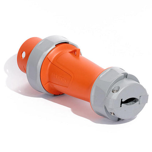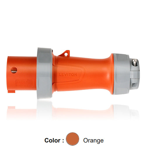 Leviton 460P12WLEV, LEV Series North American-Rated IEC 60309-1 & 60309-2 Pin & Sleeve Plug, Industrial Grade, 60A 125/250V, 3-Pole, 4-Wire, IP66/IP67/IP68/IP69K, Watertight, Orange