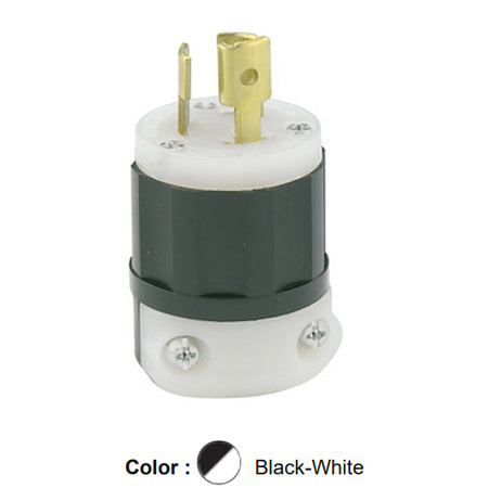 Leviton 4720-PLC, Locking Plug, Industrial Grade, Power Indication, 15A 125V, NEMA L5-15P, 2-Pole, 3-Wire, Grounding, Black/White