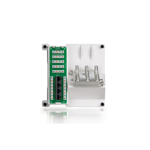 The Leviton Compact Series 4 Telephone, 4 Data, and 6-way Video Panel combines a telephone and data board and a 6-way CATV splitter on a dedicated plastic bracket for essential telephone, data, and TV RF signal distribution. The panel bridges the incoming telephone wiring to up to four Category 5e cables running to four telephone locations in an apartment, small house, or condominium. The board also enables patching input for four data connections from a router or Ethernet switch to four Cat 5e cables to computer or other network device locations. In addition, the included passive splitter connects an incoming digital cables, cable TV, or off-air RF signals to coaxial cable runs to as many as six different TV locations in the home.